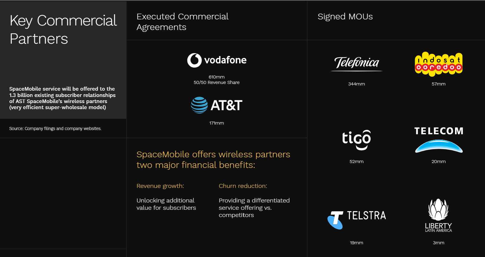 Management continues to reference agreements and commitments with dozens of mobile operators and long-term commercial potential measured in the billions.