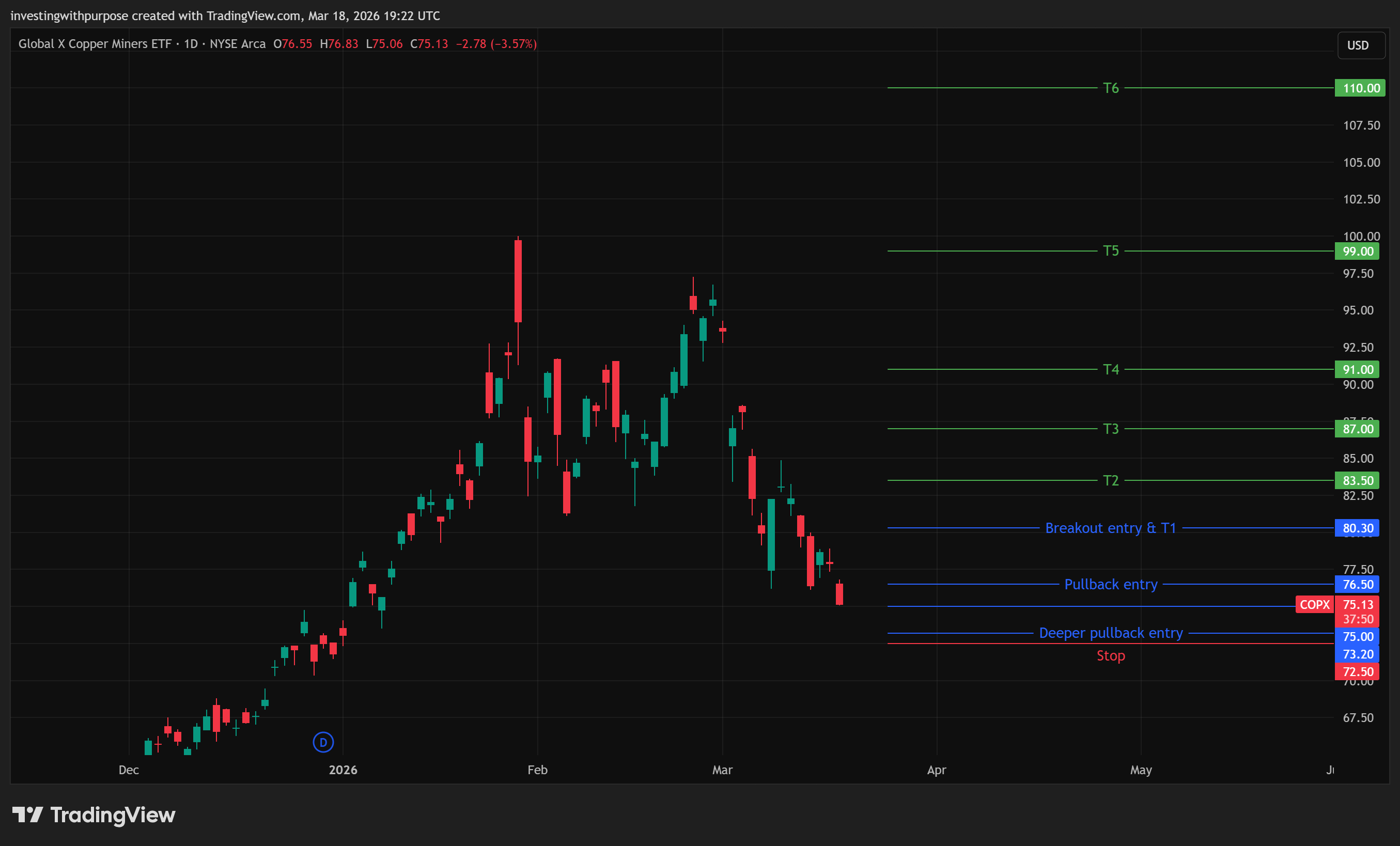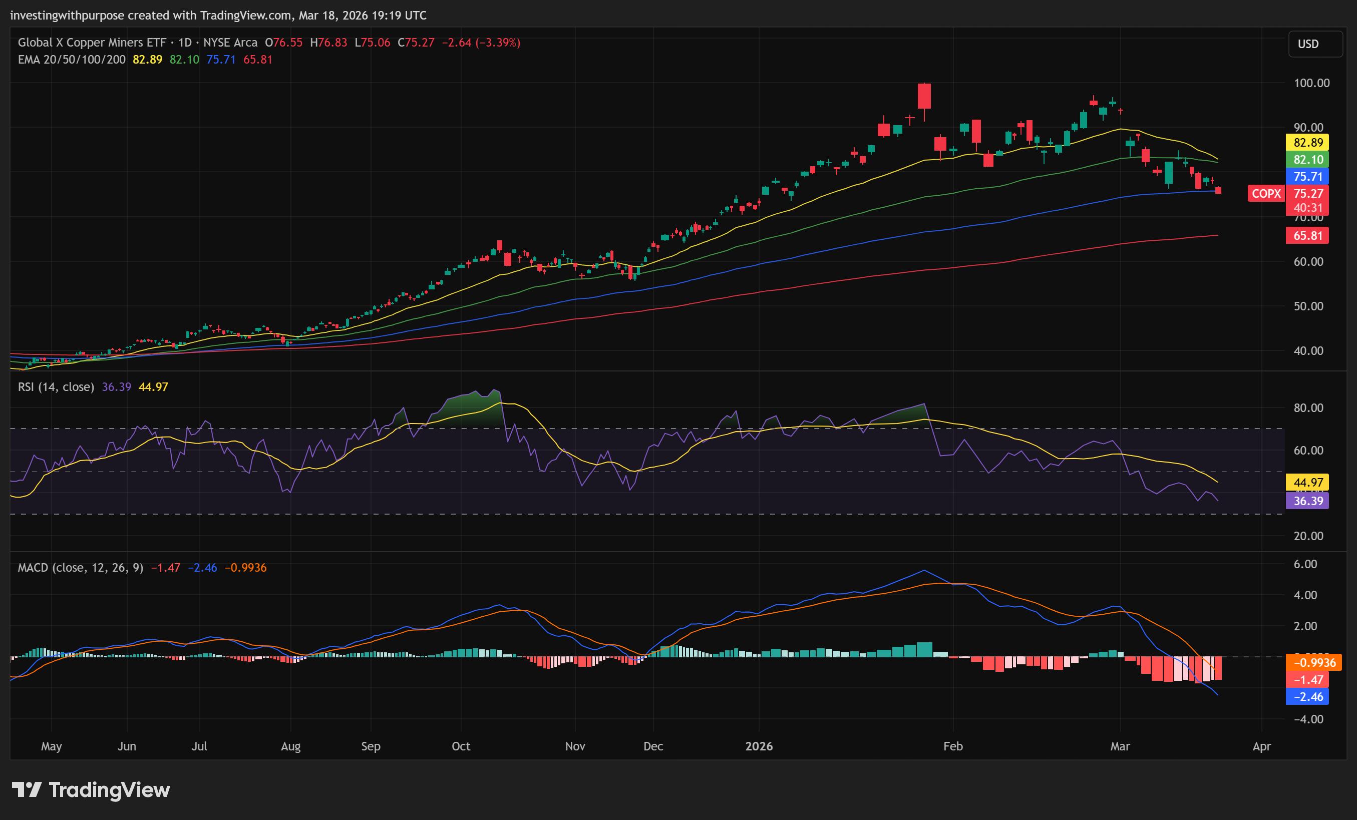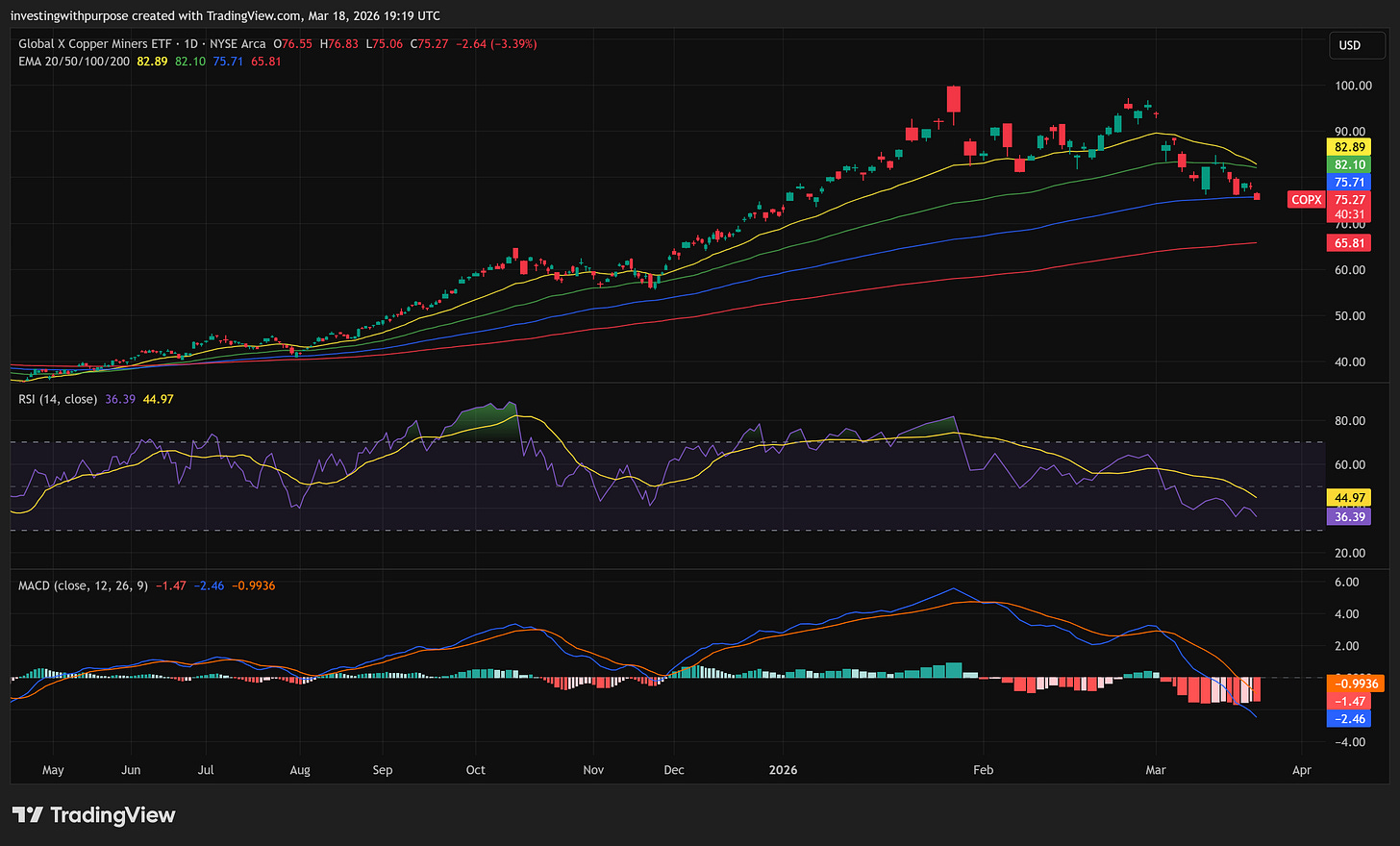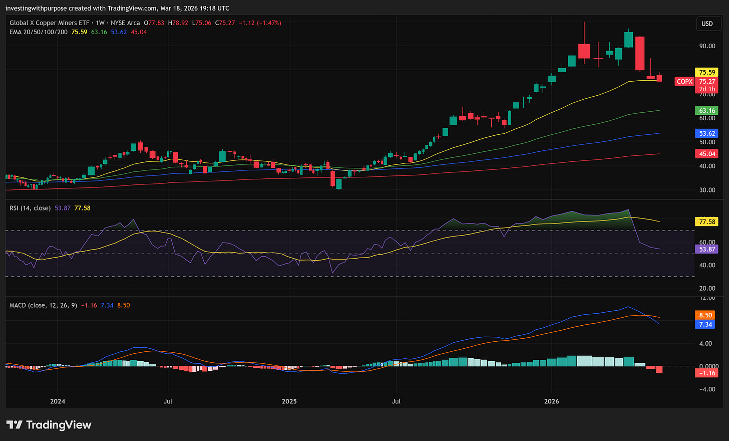 For investors using COPX as a practical copper proxy, the bigger trend is still broadly constructive, but the medium-term chart has clearly weakened.
