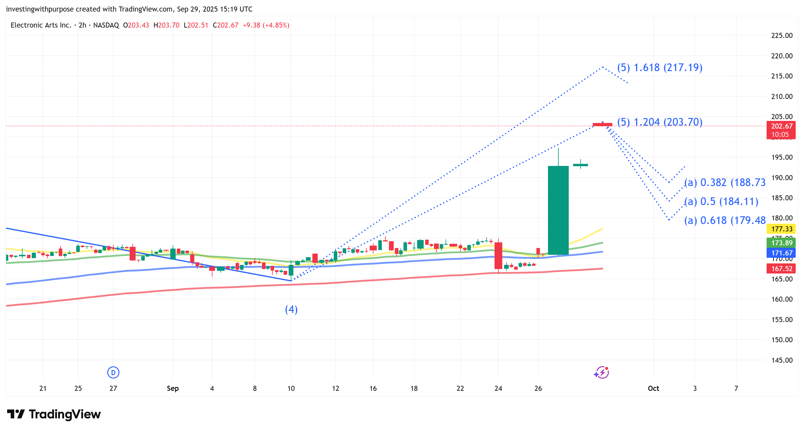 Wave 5 near-term: ~203 (cluster across 1h/2h/daily).