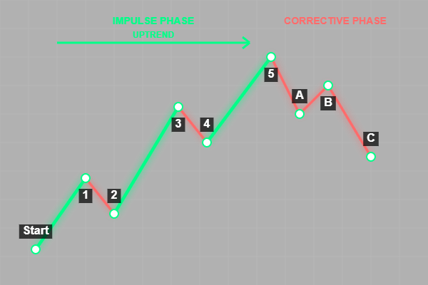 In a bull market, the 5-wave impulse is up, and the 3-wave correction is down.