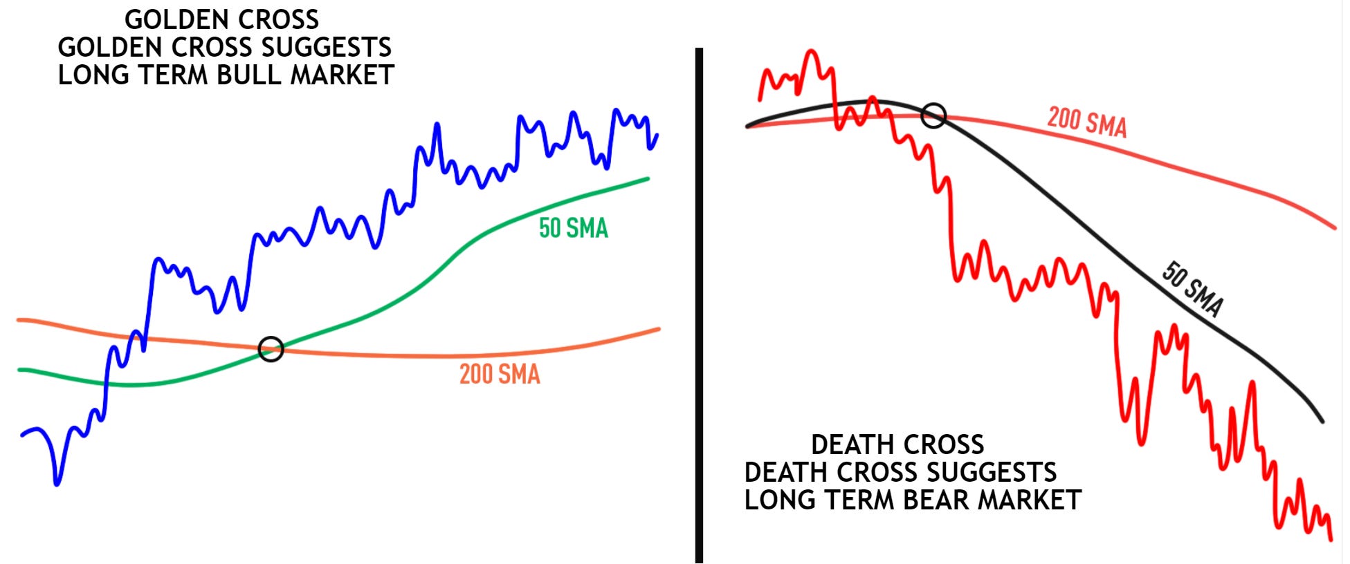 Picture a seasoned sailor teaching a novice about the seas. The 50-day MA is like the surface current, reacting quickly to changes in the wind. The 200-day MA is the deep, slow-moving undercurrent that shows long-term trend. When the 50-day MA crosses above the 200-day MA - a "Golden Cross" - it's like a favorable wind for your journey. Conversely, when it dives below - a "Death Cross" - it's a warning of rough waters ahead.