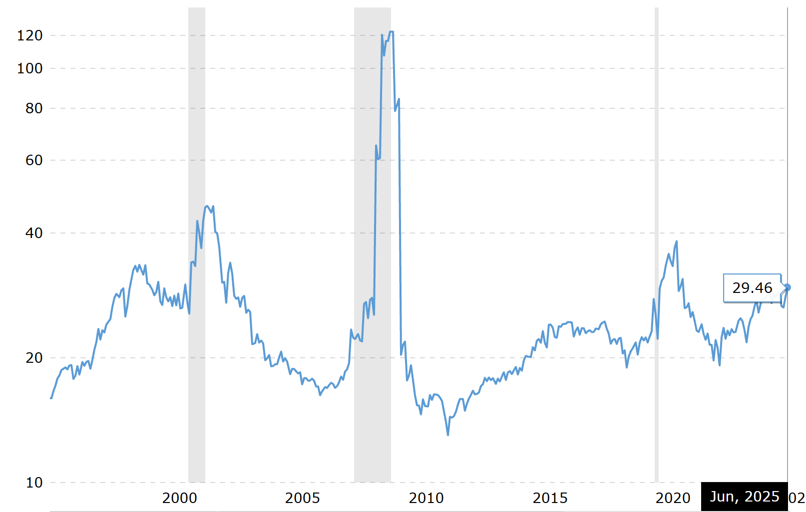 Not adjusting for the cycle: P/E ratios can look artificially low during earnings booms and artificially high during recessions.