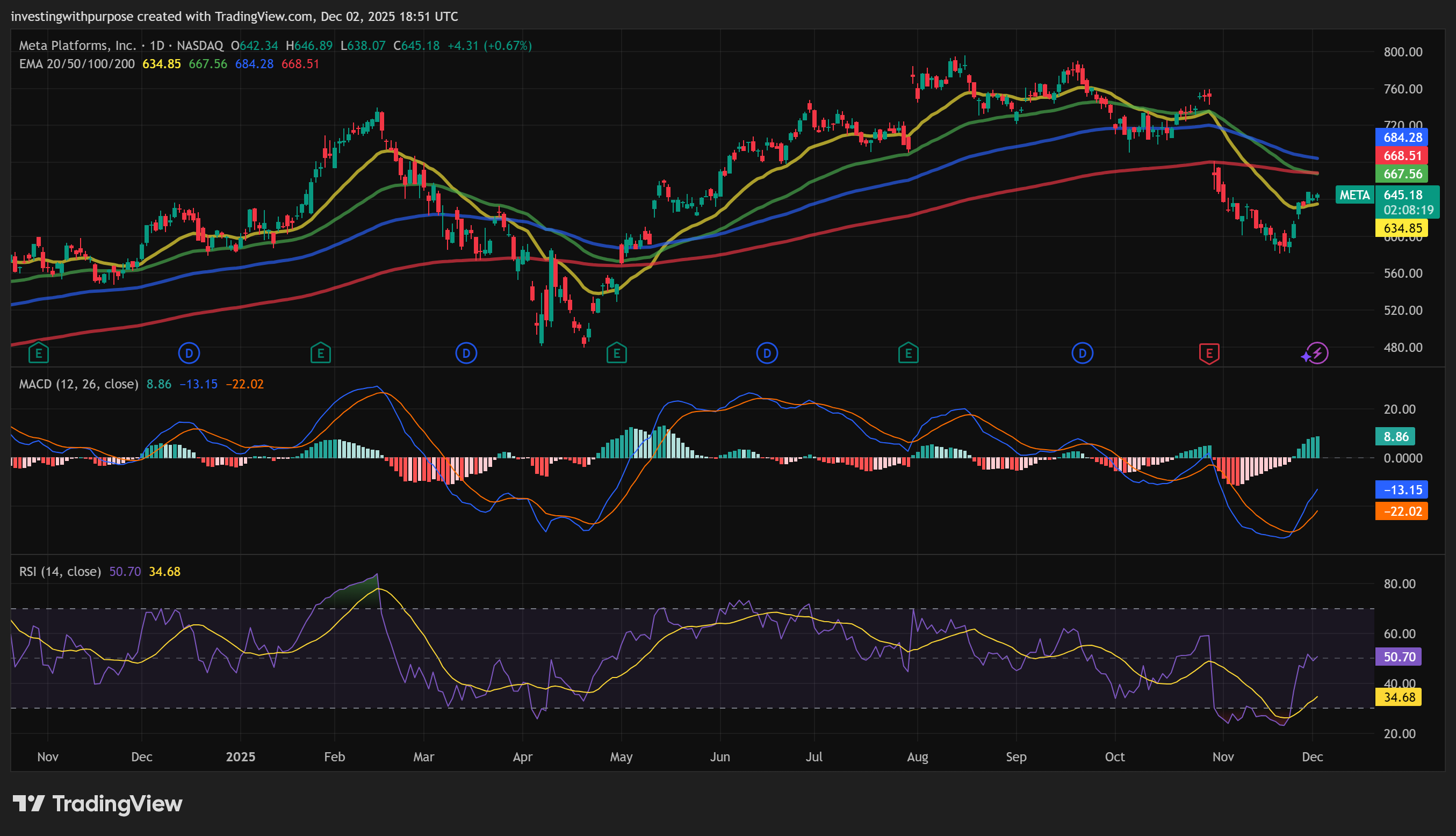 Meta is now pressing into a very heavy band of resistance between roughly 640 and 680: