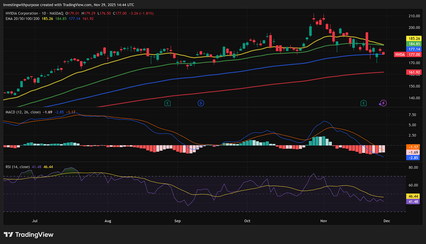 I’d be more comfortable adding in the 175–171 band, and more aggressively in 166–162, as long as the 200-day holds and fundamentals don’t crack.