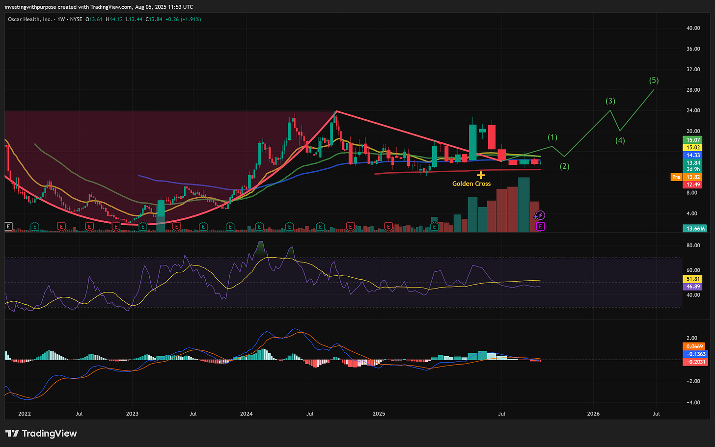 Oscar remains a long-term position. The recent guide-down reanchors the pace of profitability, not the long-term thesis. Technically, structure remains constructive. Price has completed a clean corrective cycle, momentum is shifting, and the risk-reward for adding is becoming favorable.