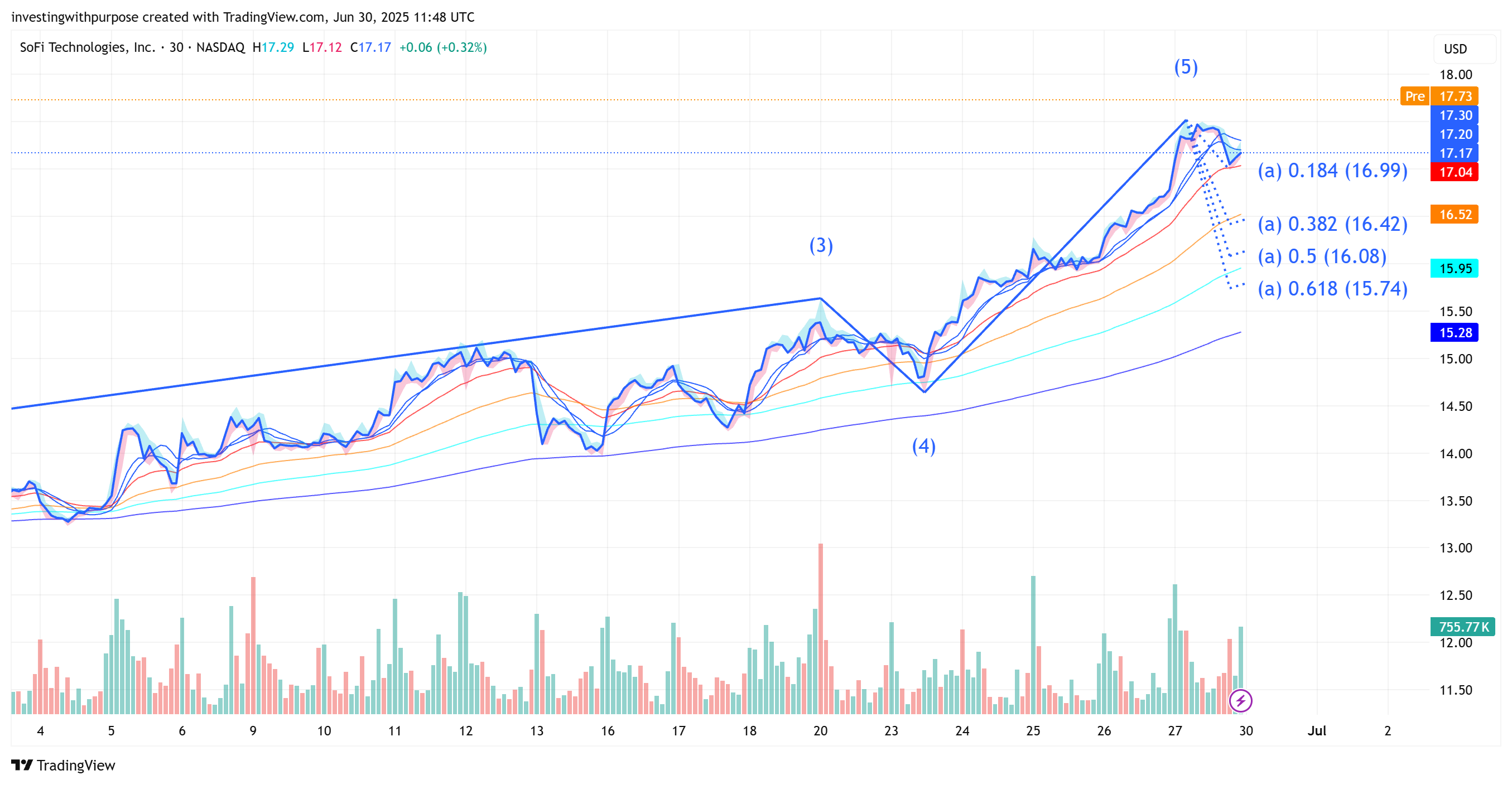 SoFi is now in early Wave A of an ABC correction.