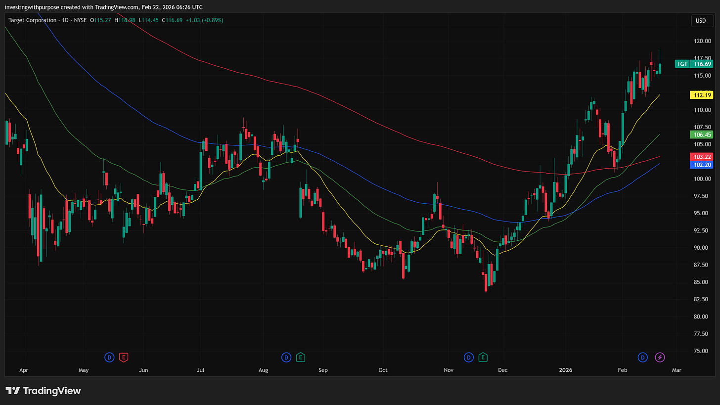 After years of sideways distribution, Target finally broke higher, carving a new series of higher highs and higher lows. Long-term charts show the trend has shifted. Short-term pullbacks are normal, and momentum is cooling constructively rather than breaking down.