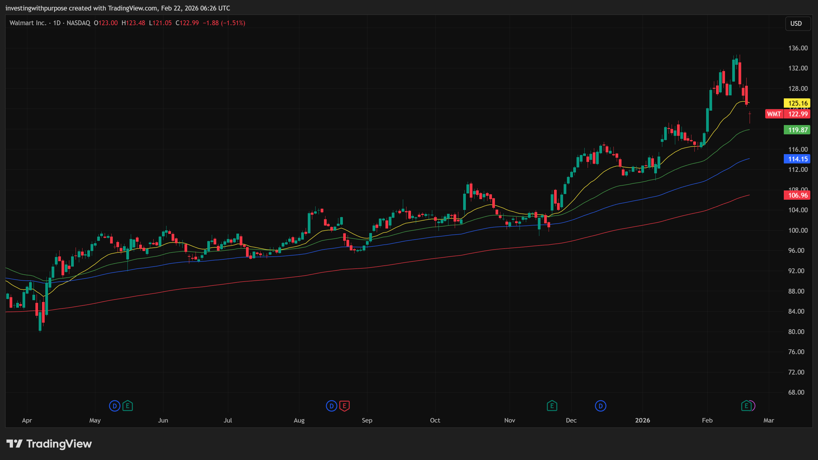 Walmart’s ascent has been methodical. Its recent retracement has stayed within structural support levels. Trend remains intact across weekly, daily, and intraday timeframes, suggesting that the broader uptrend is still dominant.