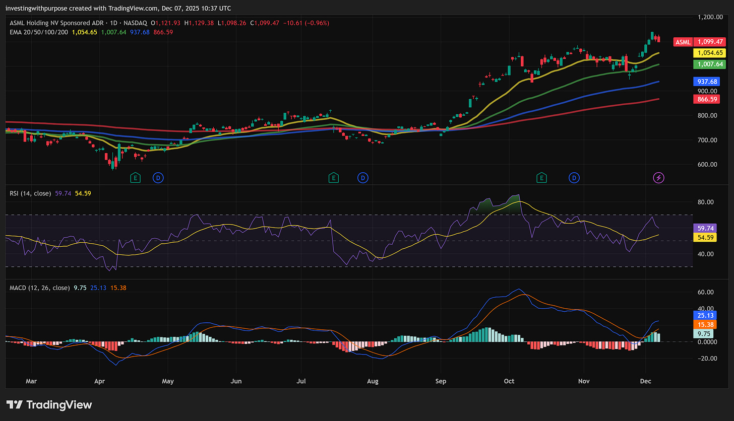 That makes ASML less about “will the product work” and more about “what price are you paying for a very rare asset, and where are you entering in the cycle”.