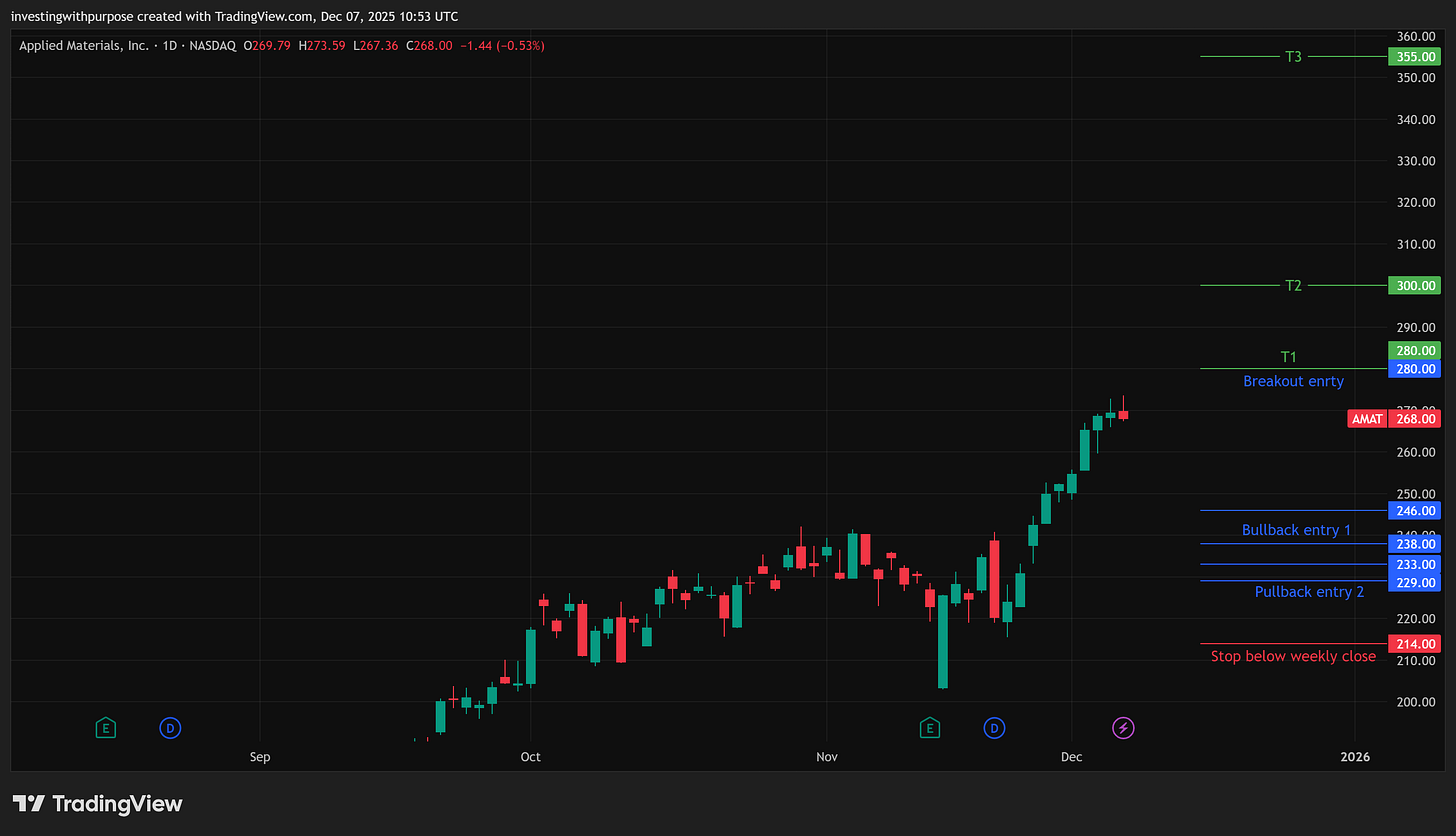 Think of AMAT as a “buy the pullback in a leader” setup rather than a breakout chase.