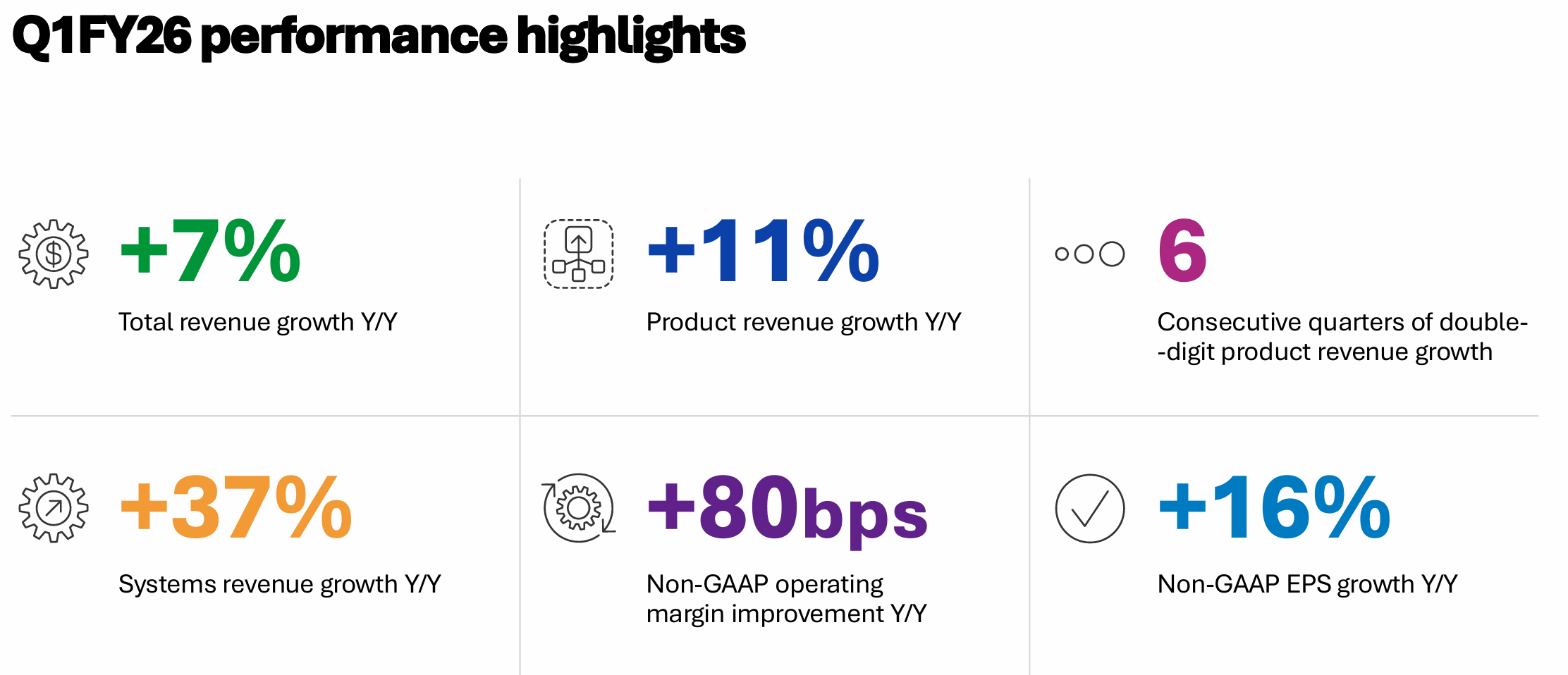 Six consecutive quarters of double-digit product revenue growth, including 37% systems growth in Q1