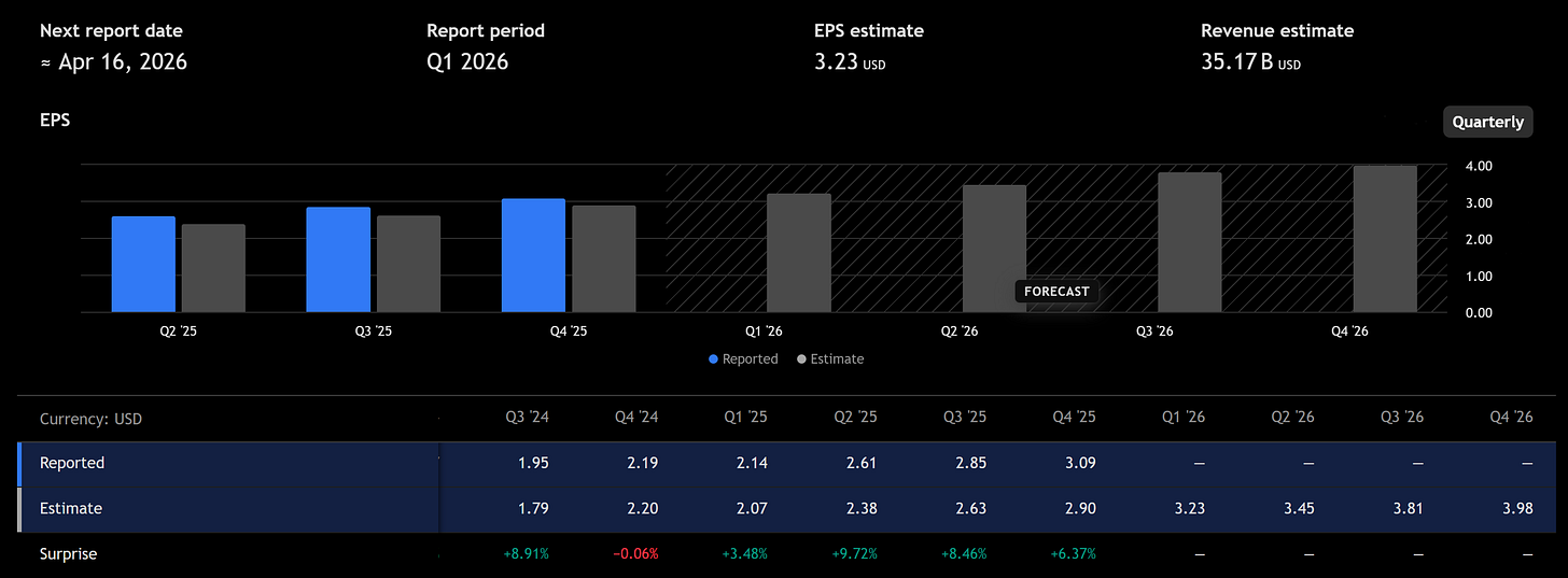 Valuation is no longer cheap, but it is not speculative. Forward P/E sits in the mid 20s. For a company compounding earnings at 15% to 20% with dominant market share in leading-edge manufacturing, that multiple is defensible.