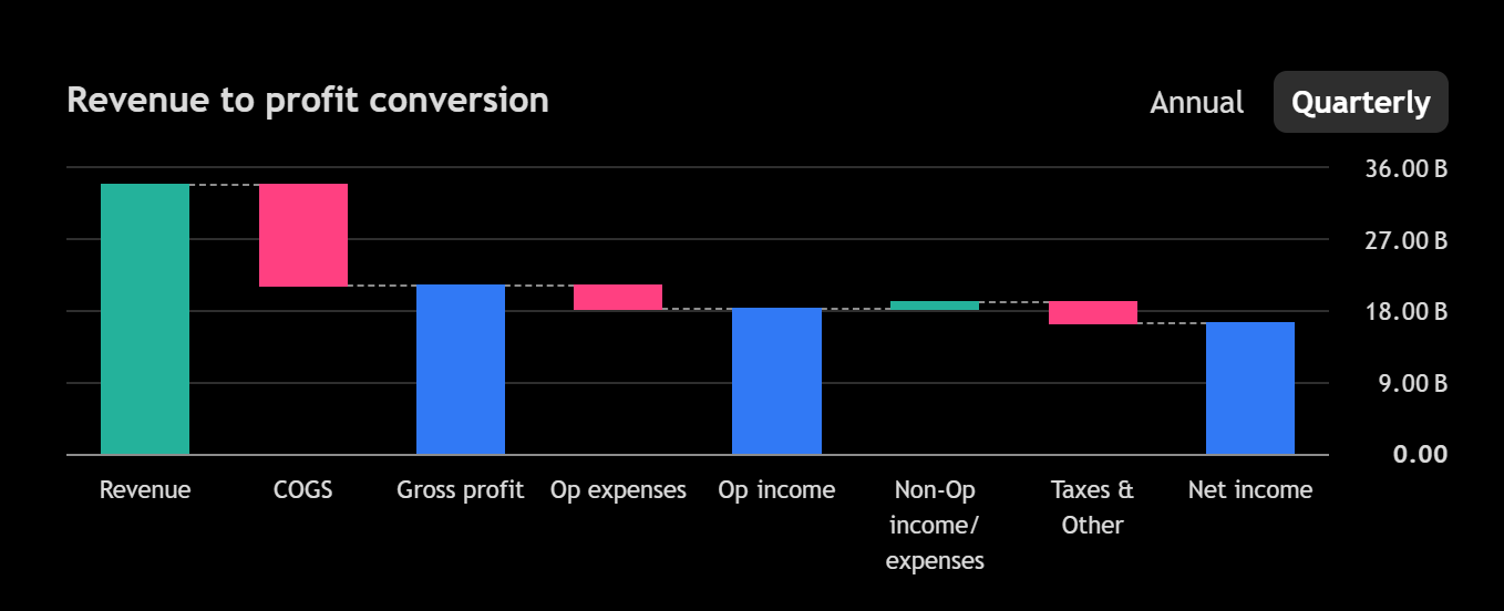 Capital expenditures remain elevated, in the 30B to 35B range annually, reinforcing technological leadership but compressing free cash flow near term.
