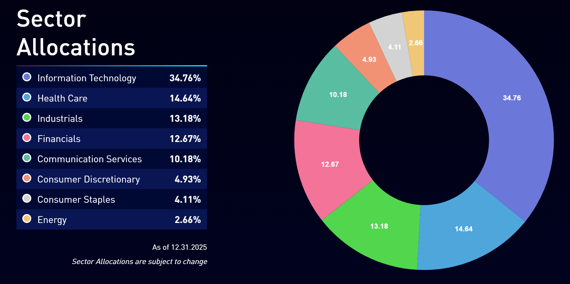 The fund primarily holds public companies driven by innovation and entrepreneurial leadership, but it also allocates a portion of the portfolio to late-stage private companies that are typically inaccessible to most investors.