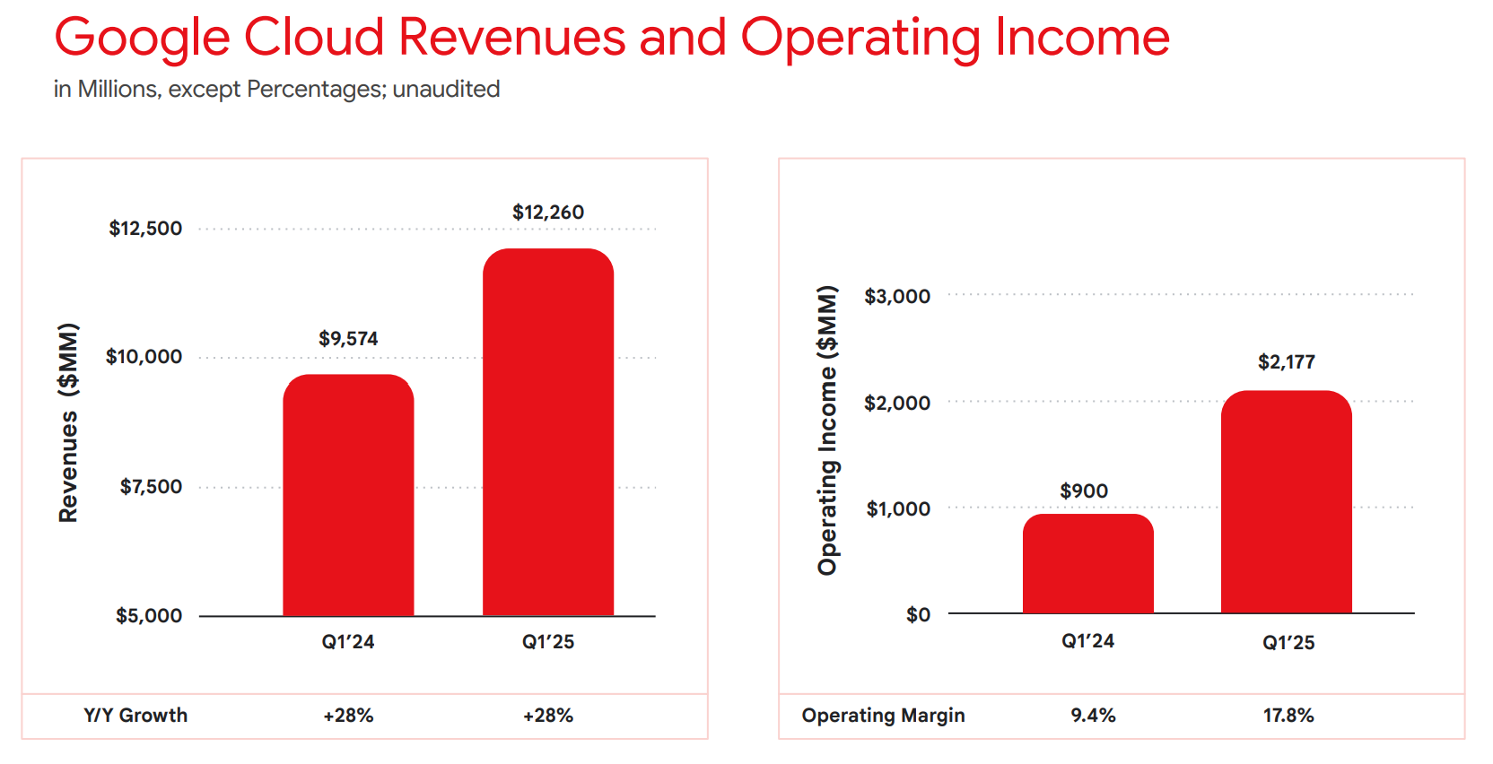Google Cloud grew at a high-20s to low-30s % rate, continuing its multi-year scaling trajectory.