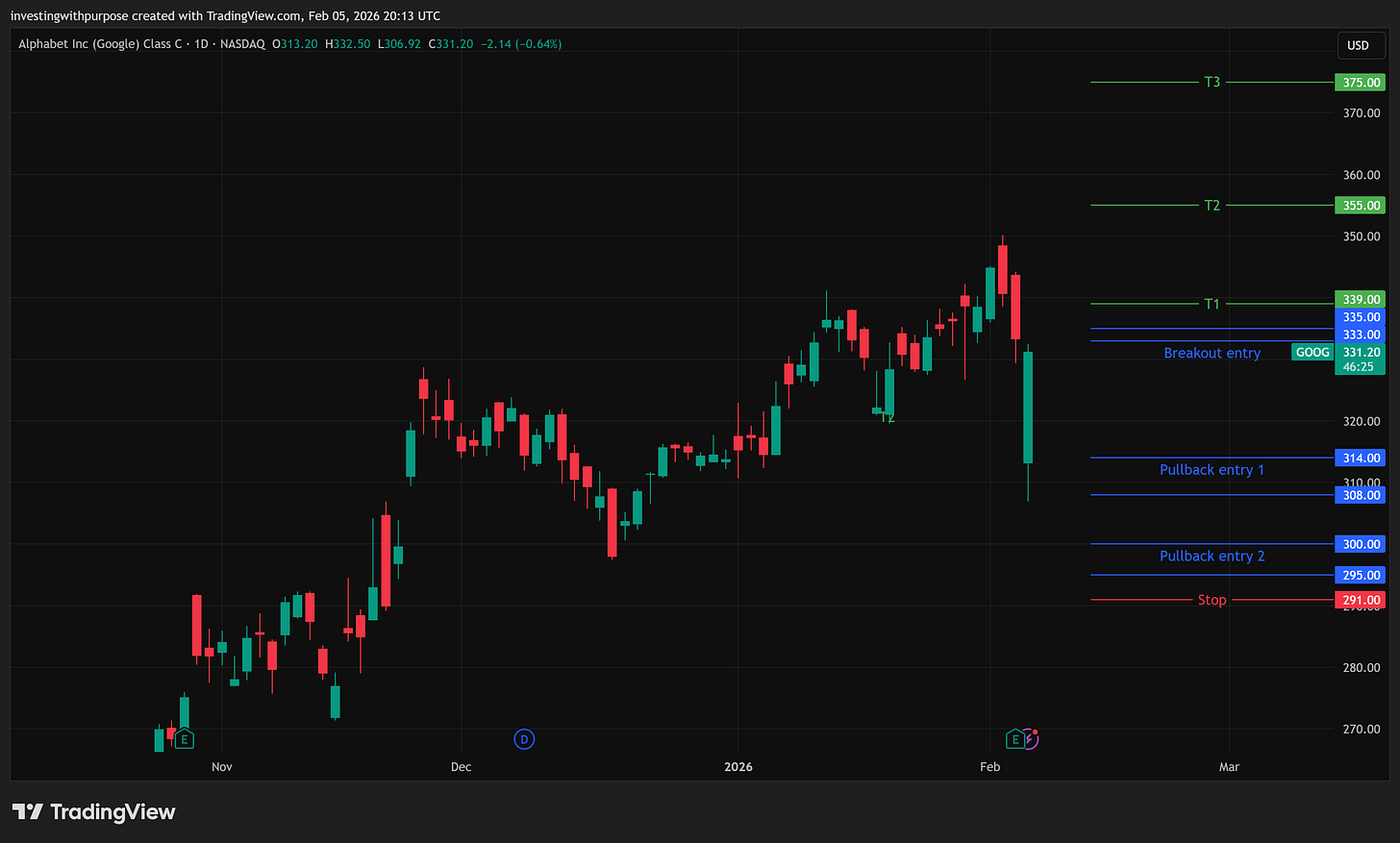 Today, Google is not a chase. It is a stock that demands patience and respect for levels. The long-term trend remains intact, fundamentals are solid, and the business continues to compound. But the next attractive entry requires either a cleaner pullback or a confirmed reclaim.