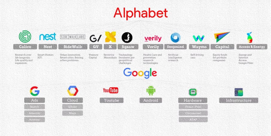 Alphabet Inc. operates a diversified digital ecosystem built around Search, YouTube, Network advertising, Google Cloud, and a portfolio of long-dated optionality through Other Bets.